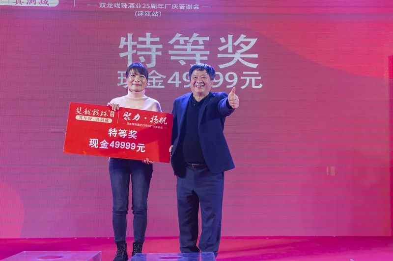 建甌市博越食品商行總經(jīng)理鄒華敏代表各位合作商和廣大消費者對雙龍戲珠酒業(yè)25周年廠慶表示祝賀。他表示,雙龍戲珠酒業(yè)一系列特色活動讓更多消費者認(rèn)識到了雙龍戲珠,感受到中國酒文化的博大精深。雙龍戲珠不僅僅是出色的白酒生產(chǎn)商,更是一個優(yōu)秀的合作伙伴,是經(jīng)銷商強有力的后盾。
