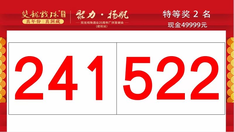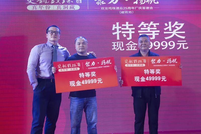 精彩紛呈的文藝表演搭配激動人心的抽獎環(huán)節(jié),讓到場的建甌人民感受到雙龍戲珠酒業(yè)在這個冬天帶來的激情與熱情。隨著本場活動特等獎(49999元現(xiàn)金)得主的誕生,現(xiàn)場氛圍瞬間達(dá)到最高潮。值得一提的是,本場活動共設(shè)特等獎兩名,以回饋建甌人民對于雙龍戲珠酒業(yè)本次廠慶活動的大力支持。