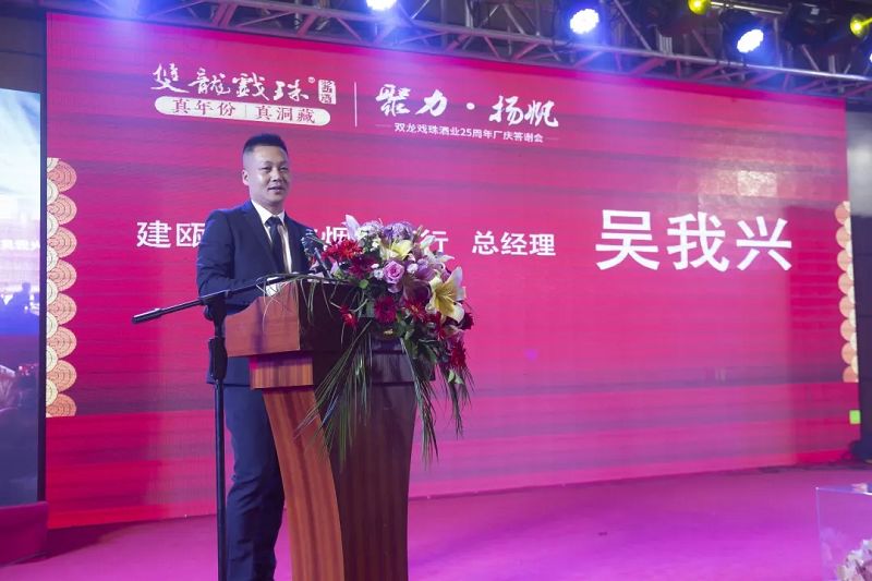 群友煙酒商行總經(jīng)理吳我興代表各位合作商和廣大消費(fèi)者對(duì)雙龍戲珠酒業(yè)25周年廠慶表示祝賀。他表示,雙龍戲珠酒業(yè)是出色的白酒生產(chǎn)商,更是一個(gè)優(yōu)秀的合作伙伴,是經(jīng)銷商強(qiáng)有力的后盾。