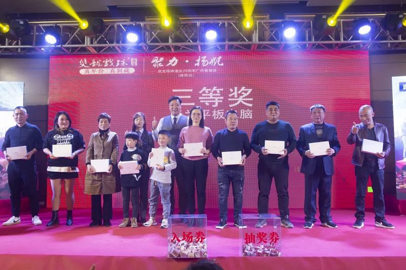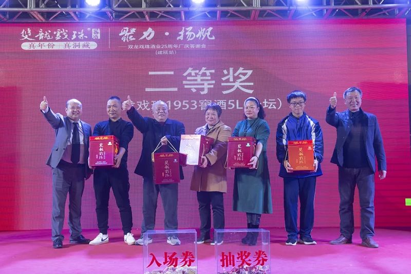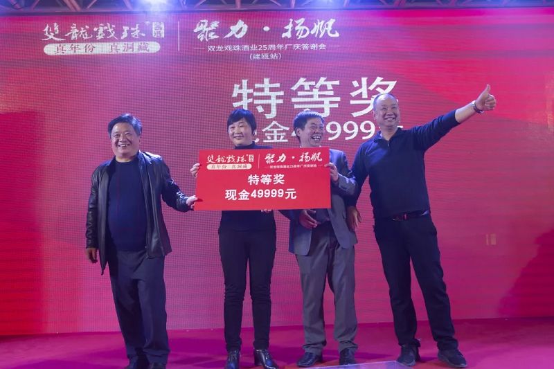 25周年廠慶答謝宴又怎么少的了激動(dòng)人心的抽獎(jiǎng)環(huán)節(jié),作為建甌站最后一場(chǎng)答謝宴活動(dòng),今晚再次誕生一位特等獎(jiǎng)得主。自廠慶活動(dòng)開(kāi)始以來(lái),已有5位幸運(yùn)者獲得49999元現(xiàn)金大獎(jiǎng),現(xiàn)場(chǎng)更有10克雙龍戲珠金條、5L雙龍戲珠1953洞藏窖酒、華為平板電腦等眾多好禮回饋。