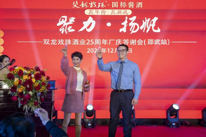 12月18日,雙龍戲珠酒業(yè)25周年廠慶答謝宴(邵武站)暨雙龍戲珠首屆“民間最牛品酒師”邵武賽區(qū)半決賽在邵武市新通泰大酒店隆重舉行。雙龍戲珠酒業(yè)總經(jīng)理黃盛堯、邵武市興佳利商行總經(jīng)理朱麗軍出席活動并致辭。