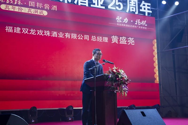 雙龍戲珠酒業(yè)總經(jīng)理黃盛堯代表雙龍戲珠酒業(yè)全體員工,向出席答謝宴的各位來賓、經(jīng)銷商表示熱烈的歡迎,向一路相伴和支持的朋友們表示由衷的感謝。