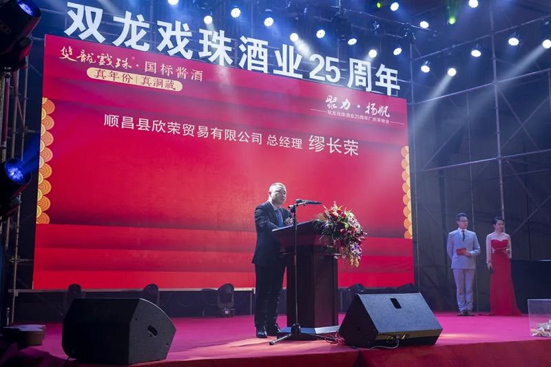 欣榮貿(mào)易有限公司總經(jīng)理繆長榮對雙龍戲珠酒業(yè)25周年廠慶表示祝賀,他表示,雙龍戲珠酒業(yè)不僅是出色的白酒生產(chǎn)商,更是一個優(yōu)秀的合作伙伴,是經(jīng)銷商的堅強后盾。