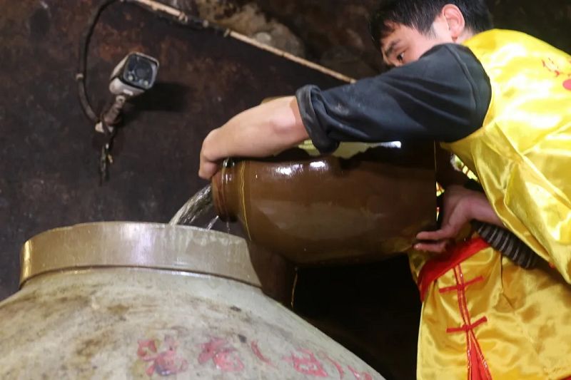 今年也不例外,遵循雙龍戲珠的洞藏文化和封藏入洞儀式,工作人員將美酒緩緩倒入壇內,讓佳釀接受時光的洗禮,獲得更甘醇悠久的韻味。