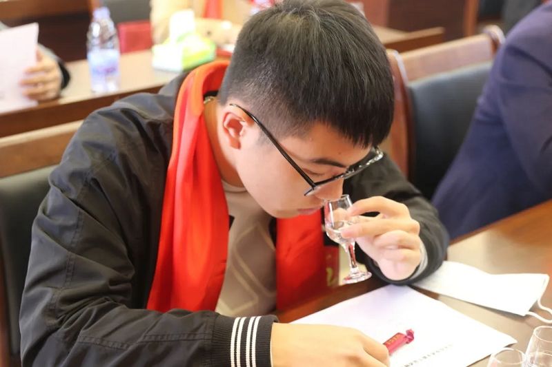 在主持人一聲令下,比賽正式開始,工作人員將一杯杯品鑒酒派發(fā)給參賽選手。選手們則充分調(diào)動自己的感官,或觀、或聞、或品、或悟,從香氣、口感、回味、等維度感受面前每一杯酒的細微差別。隨著活動進行,現(xiàn)場酒香撲鼻。