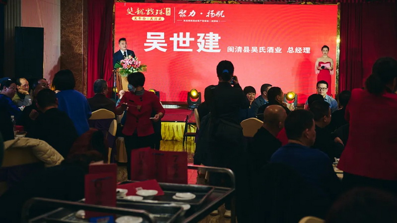 2021年12月29日晚,雙龍戲珠酒業(yè)閩清答謝宴在閩清五福大酒樓隆重舉行,雙龍戲珠酒業(yè)總經(jīng)理黃盛堯、閩清吳氏酒業(yè)總經(jīng)理吳世建出席活動(dòng)并致辭。