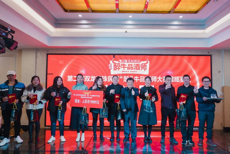 經(jīng)過(guò)兩輪比賽后,現(xiàn)場(chǎng)酒香四溢,在工作人員公平公正的評(píng)分程序中,評(píng)選出了冠亞季軍戰(zhàn)隊(duì),并由雙龍戲珠酒業(yè)董事長(zhǎng)黃德鋒為冠軍戰(zhàn)隊(duì)頒發(fā)證書(shū)和獎(jiǎng)品。另外,本場(chǎng)半決賽排名前9的選手將代表建甌戰(zhàn)隊(duì)參加第二屆雙龍戲珠民間“醉”牛品酒師大賽總決賽。