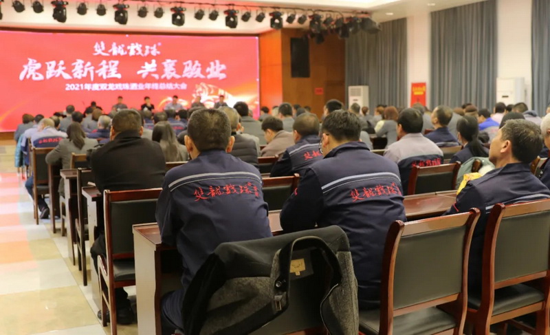 2022年1月28日,以“虎躍新程,共襄駿業(yè)”為主題的雙龍戲珠酒業(yè)2021年年終總結(jié)大會(huì)在公司10樓多功能廳隆重召開(kāi)。福建雙龍戲珠酒業(yè)有限公司董事長(zhǎng)黃德鋒,總經(jīng)理黃盛堯等公司領(lǐng)導(dǎo)及全體員工參加。