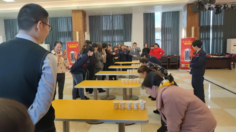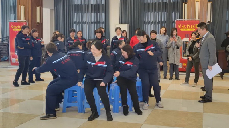 下午15時,在雙龍戲珠酒業(yè)10樓多功能廳,乒乓球團隊接力、吹乒乓球、搶凳子游戲和全員博餅活動接連上演。女職工之間配合默契,現(xiàn)場充滿了大家的歡聲笑語。