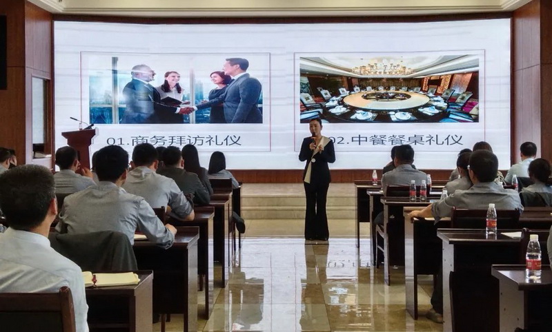 在商務(wù)禮儀培訓(xùn)課上,李麗婷老師圍繞商務(wù)拜訪禮儀和中餐餐桌禮儀進(jìn)行了細(xì)致的講解;并以實(shí)際場(chǎng)景、妝容穿著等,對(duì)職場(chǎng)中的文明禮儀進(jìn)行解說,使大家對(duì)商務(wù)禮儀有了更深入的了解。
