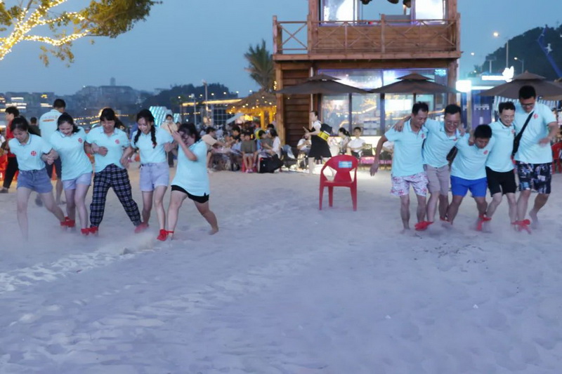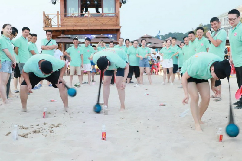 7月16日從溫州市區(qū)出發(fā),途經(jīng)洞頭漁村,雙龍戲珠團隊終于抵達最后的目的地--韭菜岙沙灘,“怪獸過河”、“絲襪保齡球”、“三人兩足”等活動接連上演,歡笑聲瞬間就讓整片沙灘變成雙龍戲珠的主場。分組參與的方式,更讓大家明白“團結(jié)協(xié)作,合作共贏”既是團隊的靈魂,也是工作的核心。
