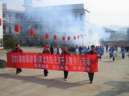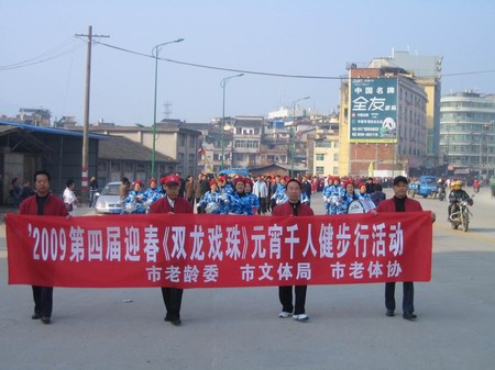 2008年元宵佳節(jié),由市老齡委、文體局、老體協(xié)、及雙龍戲珠酒業(yè)共同組織的“雙龍戲珠”