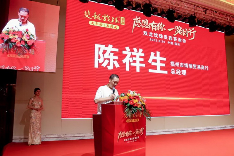 蓄發(fā)展之勢,聚眾賢之賓。8月20日舉辦的“感恩有你 一路同行”雙龍戲珠貴賓答謝會上,八方來客相匯福州,共同品鑒雙龍戲珠醬香之美。福建雙龍戲珠酒業(yè)有限公司總經(jīng)理黃盛堯,福州博瑞貿(mào)易商行總經(jīng)理陳祥生出席并致辭。