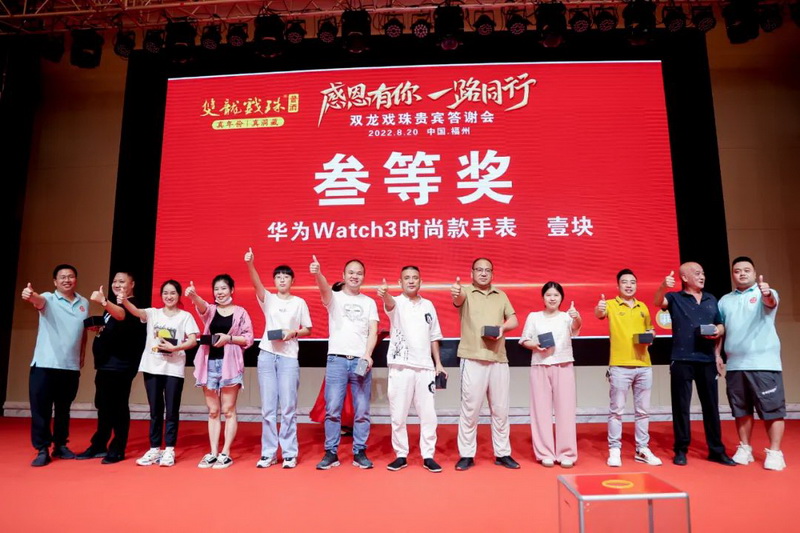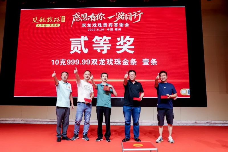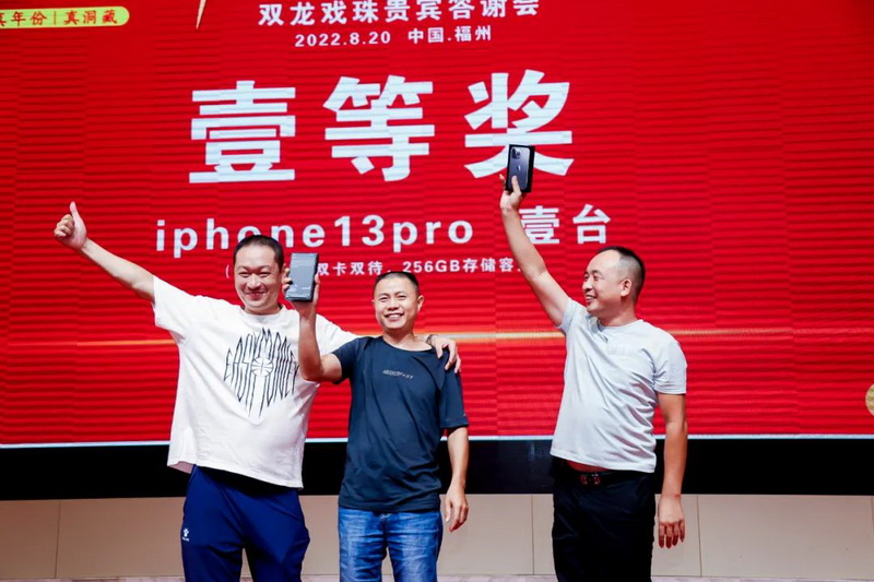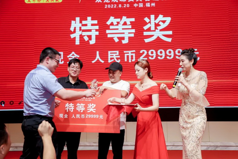 潮起閩北,聯(lián)動八閩。地處千年酒城建甌的福建雙龍戲珠酒業(yè)正不斷發(fā)掘白酒歷史底蘊,堅定福酒文化自信,在福建白酒發(fā)展浪潮中勇立潮頭!晚宴現(xiàn)場還隨機抽取了幸運觀眾并送出五輪重磅大獎,iPhone手機、10克金條、華為手表,更有特等獎29999元現(xiàn)金大獎!