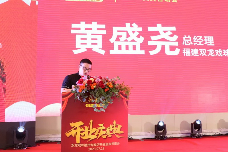 致辭環(huán)節(jié)中,福建雙龍戲珠酒業(yè)有限公司總經(jīng)理黃盛堯?qū)﹄p龍戲珠福州六一路專賣店開業(yè)表示祝賀。他說到,雙龍戲珠酒業(yè)一直以消費(fèi)者需求為導(dǎo)向,為了更好地服務(wù)于消費(fèi)者,雙龍戲珠福州六一路專賣店孕育而生。相信在各位嘉賓朋友的鼎力支持下,能讓更多人體驗(yàn)福建醬酒之美,領(lǐng)略雙龍戲珠釀造之美。