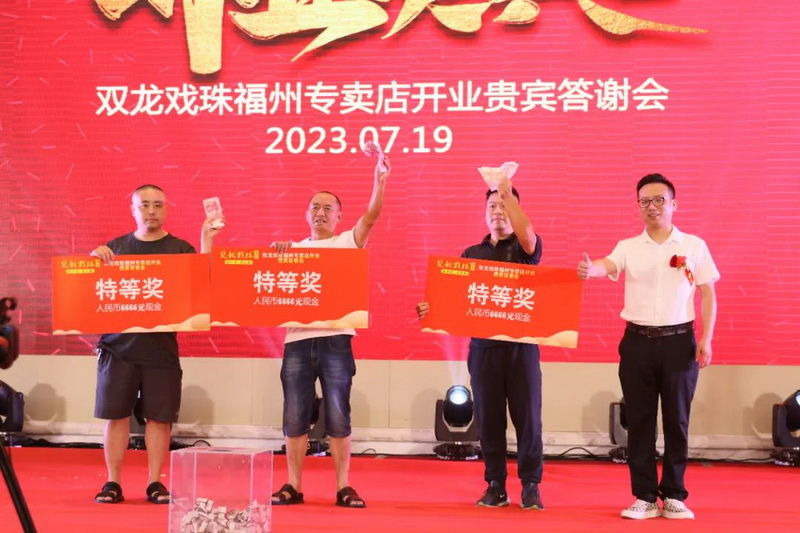 伴隨著雙龍戲珠福州六一路專賣店的盛大開業(yè),答謝晚宴上,福建雙龍戲珠酒業(yè)有限公司總經(jīng)理黃盛堯、福州天福榮貿(mào)易有限公司總經(jīng)理陳建榮進(jìn)行致辭,對(duì)現(xiàn)場(chǎng)數(shù)百名來賓的到來表達(dá)了衷心的感謝和熱烈的歡迎。