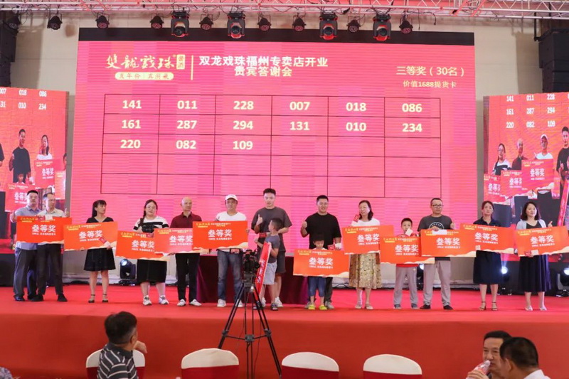 晚宴現(xiàn)場(chǎng)上演了精彩的酒道表演、歌曲演唱和舞蹈表演。五輪的抽獎(jiǎng)互動(dòng)更將現(xiàn)場(chǎng)氣氛推向了最高潮。精彩的活動(dòng)少不了重磅的大獎(jiǎng),特等獎(jiǎng)(6666元現(xiàn)金大獎(jiǎng))、一等獎(jiǎng)(3000元現(xiàn)金大獎(jiǎng))、二等獎(jiǎng)(價(jià)值2688元提貨卡)、三等獎(jiǎng)(價(jià)值1688元提貨卡)、四等獎(jiǎng)(萬物歸藏10兩瓶)。