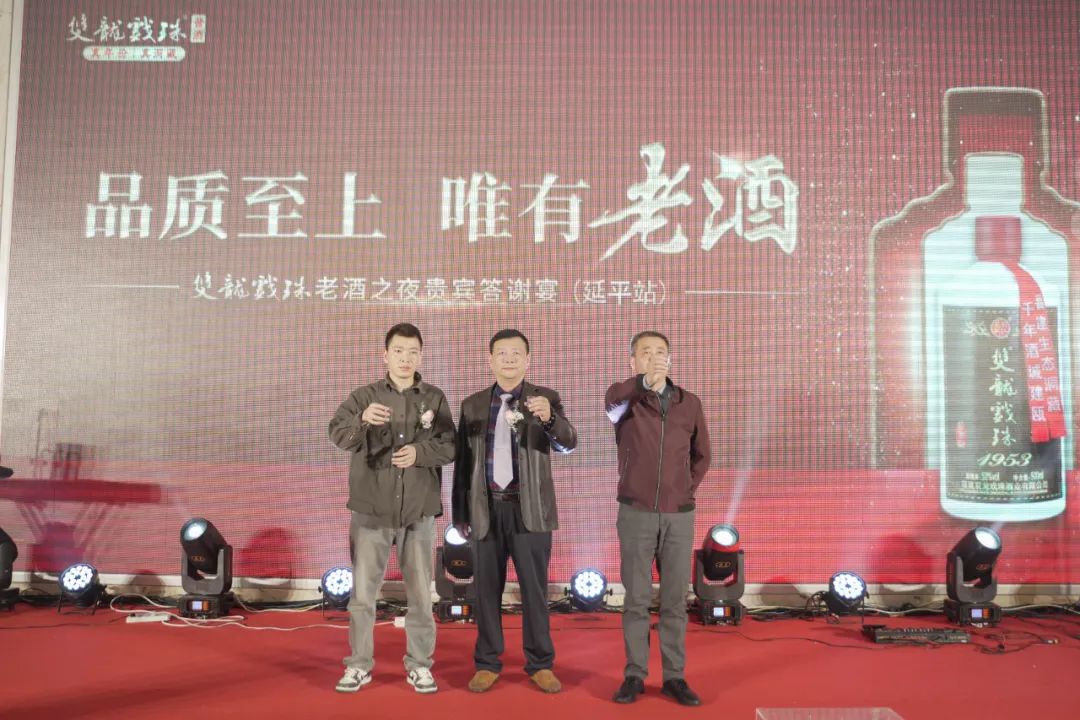 以酒為媒,以酒會友!12月3日-4日,以“品質至上 唯有老酒”為主題的雙龍戲珠老酒之夜貴賓答謝宴(延平站)在延平區(qū)九峰大廈3樓宴會廳連開兩場。福建雙龍戲珠酒業(yè)有限公司營銷總監(jiān)黃兆茂、延平區(qū)龍棲貿易有限公司總經理潘建國、延平區(qū)聯順貿易有限公司總經理鄭立新出席活動并致辭。
