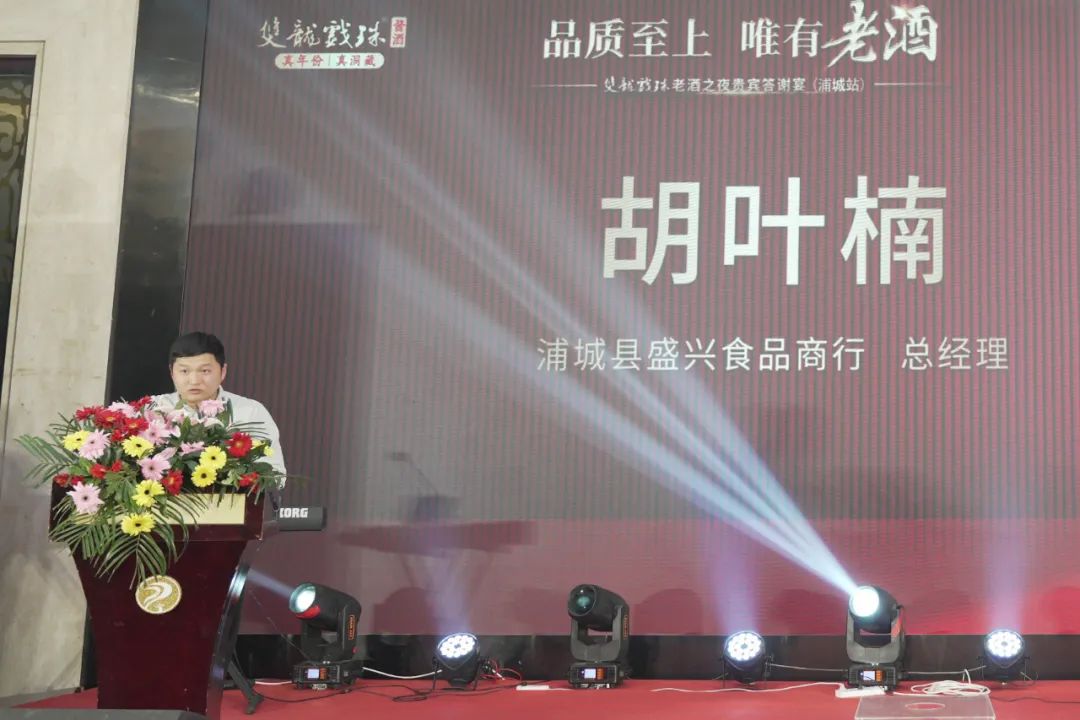 浦城縣盛興食品商行總經(jīng)理胡葉楠在致辭中感謝大家的出席,他表示浦城市場的發(fā)展離不開大家的支持,我們舉辦答謝宴,在品鑒高品質(zhì)老酒之際,也想借此機(jī)會加強(qiáng)彼此之間的聯(lián)系,讓各位朋友、伙伴體驗醬香之美,共贏美好未來!