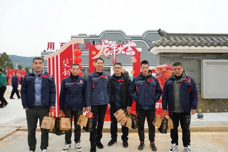 卯兔辭歲,辰龍迎新!為答謝全體員工一年來的辛勤付出,迎接嶄新的一年,1月26日,吉祥中國龍 雙龍戲珠酒——雙龍戲珠酒業(yè)年夜飯活動在雙龍戲珠桐源基地隆重舉行。公司領(lǐng)導(dǎo)、貴賓、全體員工及家屬歡聚一堂,其樂融融,共同慶賀新一年的到來!