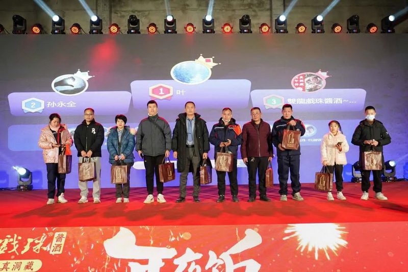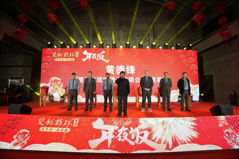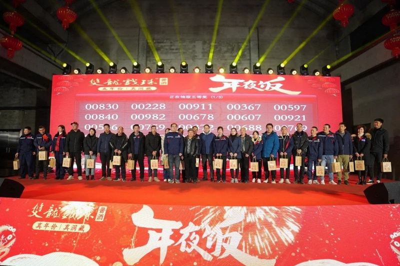 雙龍戲珠酒業(yè)董事長黃德鋒在致辭中對全體雙龍人一年來的辛勤付出表示感謝,并向大家致以新年的美好祝愿。雙龍戲珠酒業(yè)發(fā)展到現(xiàn)在是全體員工一起努力的結(jié)果,今晚在桐源基地舉辦年夜飯活動,與大家一同見證雙龍戲珠發(fā)展的成果。