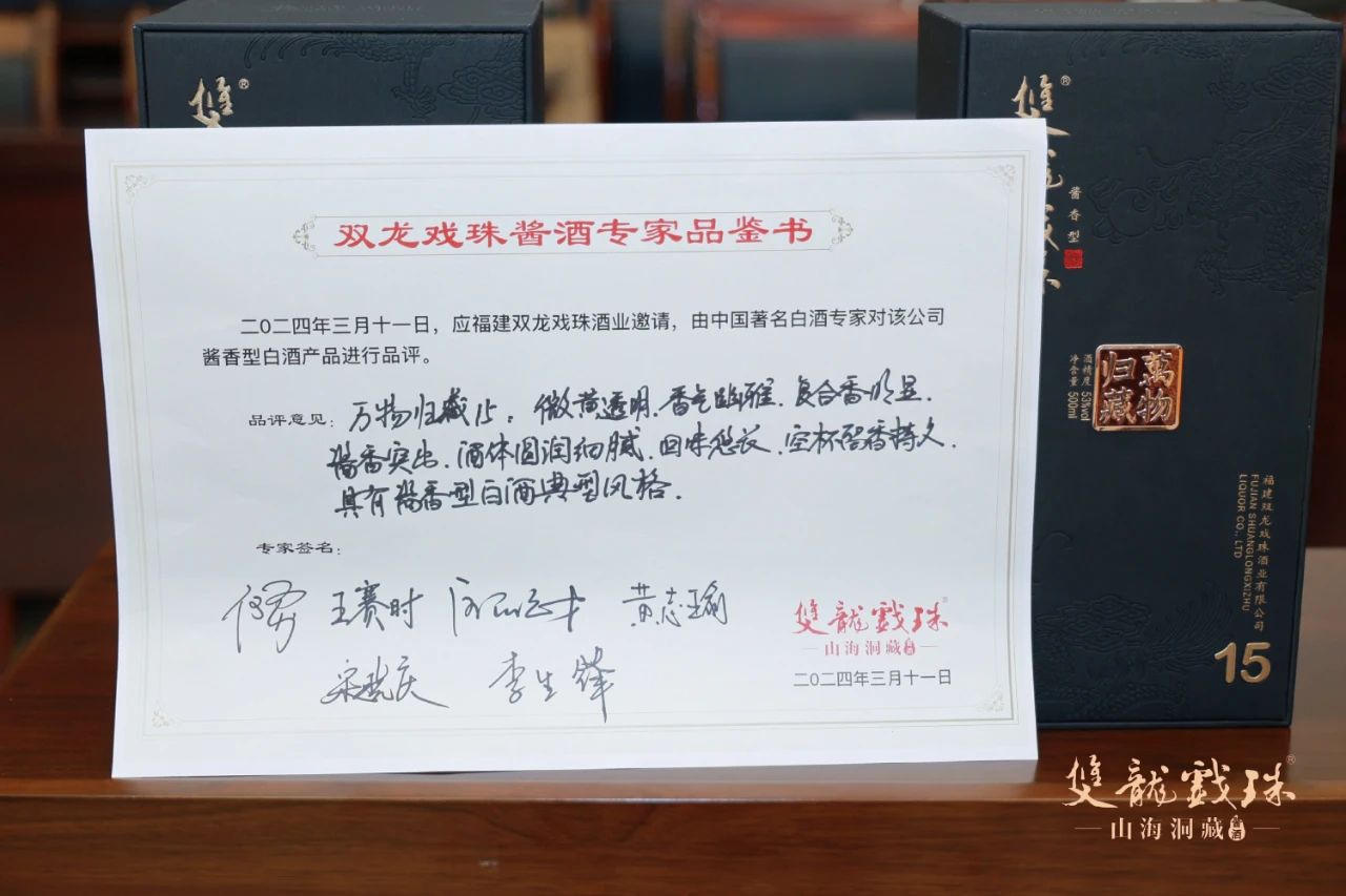 3月11日,中國(guó)酒業(yè)協(xié)會(huì)秘書長(zhǎng)何勇、中國(guó)酒史學(xué)家王賽時(shí)、國(guó)家一級(jí)品酒師黃志瑜、國(guó)家一級(jí)品酒師宋曉慶、國(guó)家白酒評(píng)委歐陽(yáng)元財(cái)、福建雙龍戲珠酒業(yè)有限公司總工程師李生鋒六位專家齊聚雙龍戲珠,對(duì)雙龍戲珠萬(wàn)物歸藏15、1953窖酒、龍年紀(jì)念酒進(jìn)行了現(xiàn)場(chǎng)權(quán)威鑒評(píng),并給出了綜合評(píng)價(jià)。