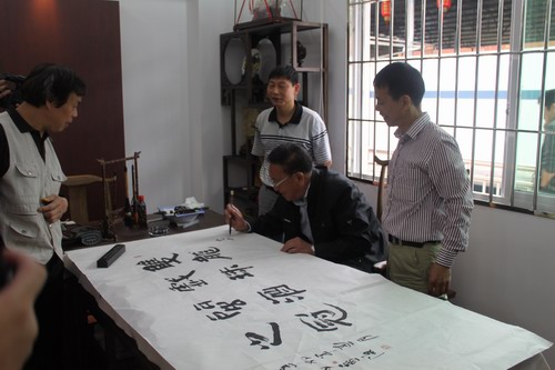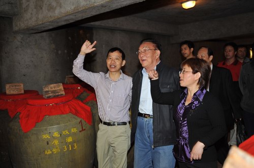 2011年5月25日,沈老在參加完“雙龍戲珠酒專家鑒評(píng)會(huì)”后,在總經(jīng)理馮敏的陪同下參觀雙龍戲珠酒業(yè),從釀造車間、研發(fā)中心、罐裝車間、雙龍洞每到一處沈老都饒有興趣停下來(lái)仔細(xì)觀察和總經(jīng)理一起探討釀造工藝,對(duì)我公司獨(dú)創(chuàng)的“六糧釀造及洞藏”給予了很高的評(píng)價(jià),沈老說(shuō)在福建能釀出多糧濃香型白酒實(shí)屬不易呀,勉勵(lì)我們要堅(jiān)持原漿釀造,為福建的白酒事業(yè)做出貢獻(xiàn),參觀后沈老還和眾專家一起為雙龍戲珠酒題詞“雙龍戲珠、閩酒之冠”。