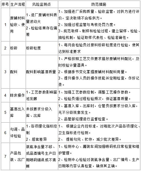 圍繞影響不合格品的因素,重點在配料過程、攤涼操作、入池發(fā)酵、勾調(diào)、檢驗等為生產(chǎn)的重要環(huán)節(jié),我們進行層層控制,分別制定了操作規(guī)程,當出現(xiàn)不合格時,立刻停止生產(chǎn),查明不合格原因,待查明原因通過整改符合要求才能恢復生產(chǎn)。