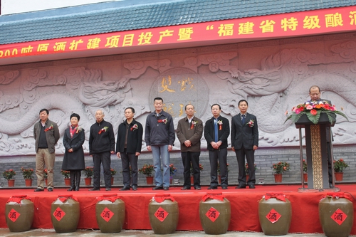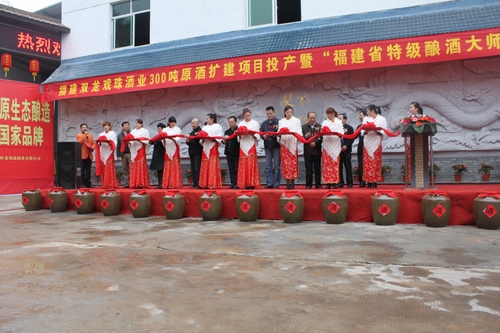 2012年12月12日雙龍戲珠酒業(yè)300噸原酒擴(kuò)建項(xiàng)目投產(chǎn)暨福建省特級(jí)釀酒大師頒證儀式在我司隆重舉行。福建省酒業(yè)協(xié)會(huì)秘書長朱榕光、南平市企業(yè)家聯(lián)合會(huì)會(huì)長宮維祺、建甌市市長陳宗榮、建甌市人大常委會(huì)主任陳祥平、建甌市政協(xié)主席吳劍琴等領(lǐng)導(dǎo)出席儀式。副市長鄭敏主持儀式,儀式上福建省酒業(yè)協(xié)會(huì)秘書長朱榕光為雙龍戲珠酒業(yè)董事長馮國華榮獲福建?。ㄎㄒ唬┨丶?jí)釀酒大師頒發(fā)證書及牌匾,頒證儀式后參加儀式得各位領(lǐng)導(dǎo)為雙龍戲珠酒業(yè)300噸原酒擴(kuò)建項(xiàng)目投產(chǎn)剪彩。
