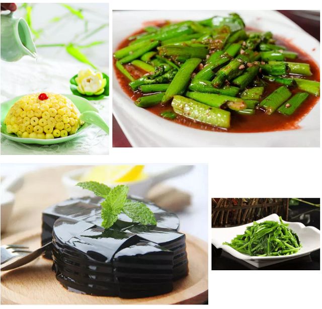 特別值得一提的還有“吉陽四寶”這道名菜。由于當(dāng)?shù)鬲?dú)特的氣候、水文、土壤等區(qū)域小環(huán)境,當(dāng)?shù)爻霎a(chǎn)聞名遐邇的建澤瀉、建吉蓮、仙人草、水空心菜等特產(chǎn),素稱“吉陽四寶”。而用這些食材烹制出的糟香澤瀉花、扣蒸建白蓮、蒜茸水空心菜、甜湯仙人草,不僅滋陰補(bǔ)腎,而且養(yǎng)顏抗老,堪稱人間美味,是吉陽四寶小鎮(zhèn)和吉陽葛老莊農(nóng)家樂的招牌菜。