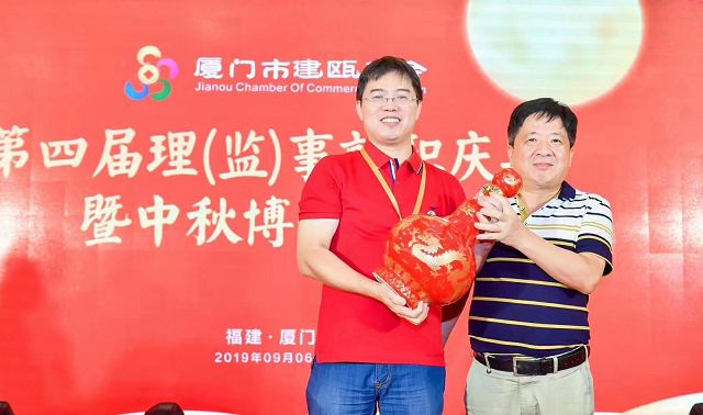 2019年9月6日福建雙龍戲珠酒業(yè)有限公司傾情助力廈門(mén)市建甌商會(huì)第四屆理(監(jiān))事就職慶典暨中秋博餅晚宴。