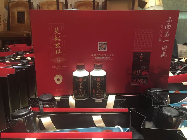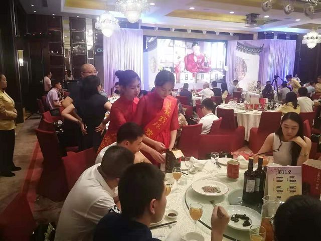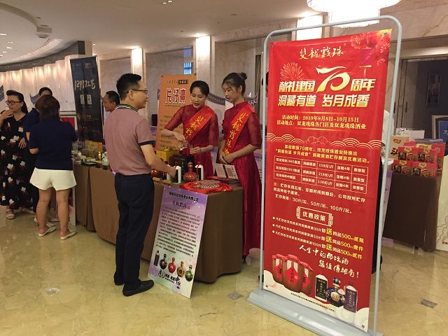 雙龍戲珠酒業(yè)現(xiàn)場(chǎng)產(chǎn)品展示、來(lái)賓現(xiàn)場(chǎng)品鑒美酒