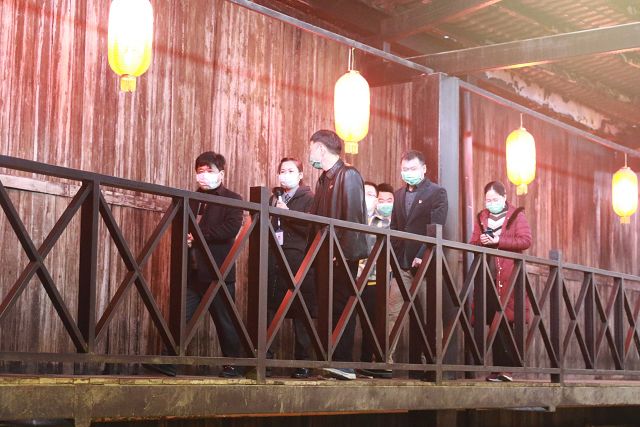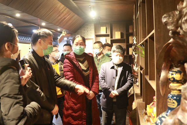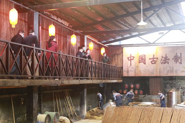在雙龍戲珠酒業(yè)有限公司董事長(zhǎng)黃德鋒的陪同下,陳建新一行依次參觀走訪了雙龍戲珠酒廠品牌展示大廳、釀造車(chē)間以及貯酒山洞雙龍洞。