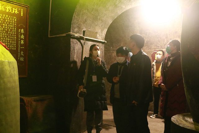 在雙龍洞,面對(duì)洞內(nèi)陳列著的從酒廠成立至今的雙龍戲珠酒以及撲鼻而來(lái)的濃郁的酒香味,領(lǐng)導(dǎo)們不約而同地發(fā)出了由衷的贊嘆。