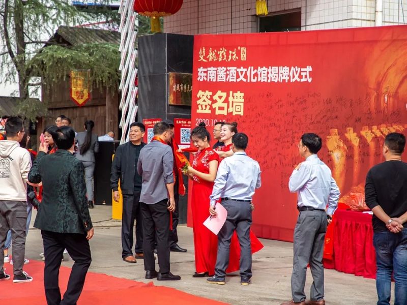 在喜慶的鞭炮鑼鼓聲和精彩的舞龍表演中,雙龍戲珠東南醬酒文化館正式揭牌!