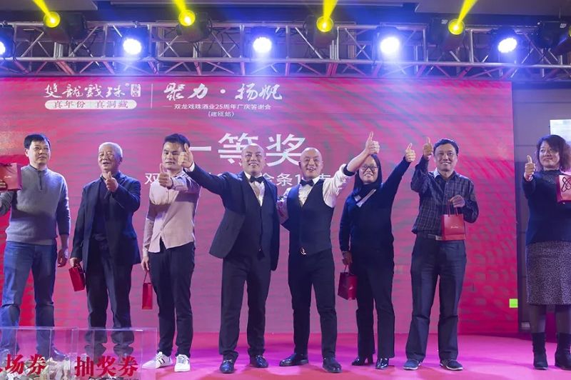 精彩紛呈的文藝表演搭配激動人心的抽獎環(huán)節(jié),讓到場的建甌人民感受到雙龍戲珠酒業(yè)在這個冬天帶來的激情與熱情。隨著本場活動特等獎(49999元現(xiàn)金)得主的誕生,現(xiàn)場氛圍瞬間達(dá)到最高潮。值得一提的是,本場活動共設(shè)特等獎兩名,以回饋建甌人民對于雙龍戲珠酒業(yè)本次廠慶活動的大力支持。