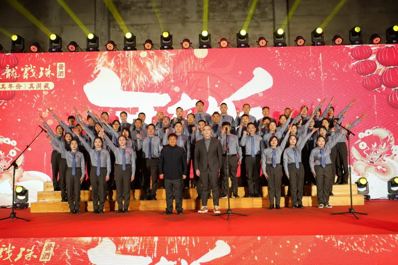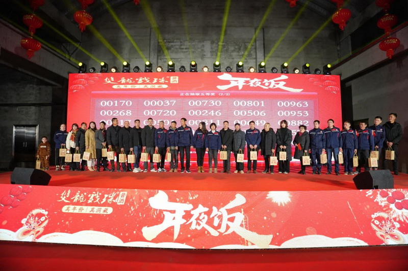 雙龍戲珠酒業(yè)董事長黃德鋒在致辭中對全體雙龍人一年來的辛勤付出表示感謝,并向大家致以新年的美好祝愿。雙龍戲珠酒業(yè)發(fā)展到現(xiàn)在是全體員工一起努力的結(jié)果,今晚在桐源基地舉辦年夜飯活動,與大家一同見證雙龍戲珠發(fā)展的成果。